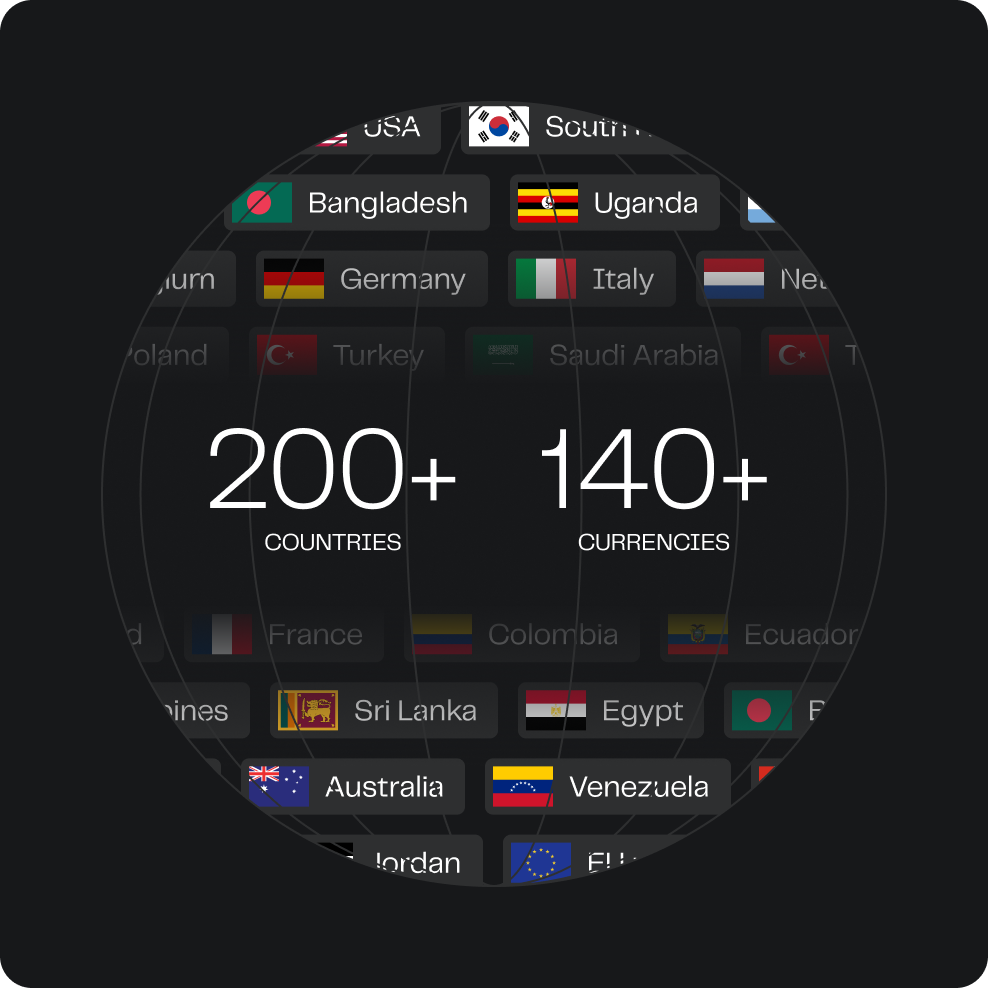 Replace a patchwork of banks and PSPs with a single platform that curates how funds move between customers, sellers, suppliers, and partners across 170+ countries and 130+ currencies.